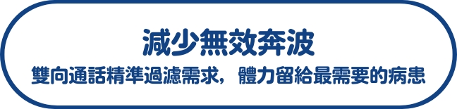 傳統護士鈴「只響不通」,導致護理師必須在長廊來回奔視。本系統透過雙向通話,讓護理師在第一時間確認需求。能有效減少 50% 以上的非必要走動,讓護理人員將寶貴體力留給危急時刻,從根本緩解人力短缺帶來的過度疲勞。