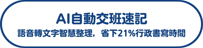 文書作業常是護理師加班的主因。導入生成式 AI 技術,將口述重點即時轉化為結構化文字。這不僅省下 21% 的手寫行政時間,更能精準產出交班紀錄。讓「講完即錄完、錄完即交班」成為現實,把被文書工作佔據的時間還給醫護。