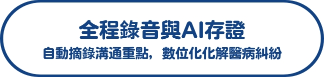 溝通過程透明化是保護第一線最好的方式。系統全程錄音並由 AI 自動提取關鍵摘要,在發生爭議時能迅速調閱數位事證。這不僅是保障醫護專業尊嚴的盾牌,更是機構風險管理的利器,透過精準紀錄避免各說各話的法律風險,全方位守護機構聲譽。