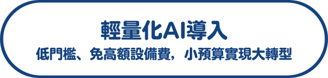 數位化是巨額投資嗎?本方案打破「AI 門檻高、系統開發貴」的迷思。採用雲端訂閱模式,無需購置昂貴的機房伺服器,更省去數百萬的自建軟體成本。讓機構能以最小的預算投資,直接對齊醫學中心等級的 AI 智慧照護科技。