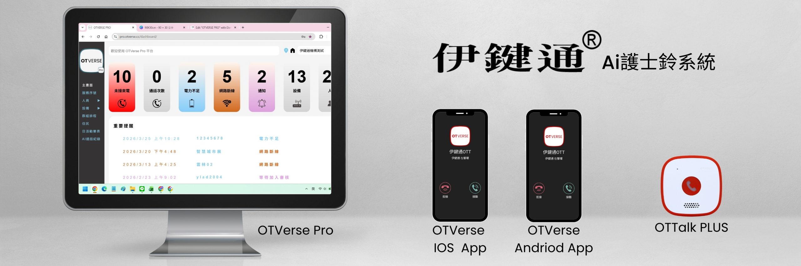 • OTVersePro 管理平台:全面了解設備現況 & 數據 & 錄音 且可進行人員排班